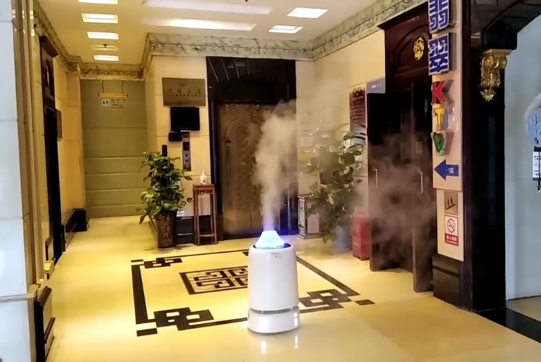 智能感控消毒機器人擁有幹霧消殺和紫外線消殺兩種消毒模式。在幹霧消殺模式下,機器人將消毒液超幹霧化至小於10微米的幹霧顆粒,能夠與空氣中的病菌充分接觸消殺;在紫外線消殺模式下,雙麵紫外燈陣列可旋轉式360°全方位照射,能夠對環境物表進行強力消殺。滿負荷運行,可消殺1000至2000平方米麵積的區域 |