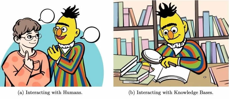 在這個框架中,語言模型被視為能夠觀察、行動和從外部實體獲得反饋的代理。具體而言,語言模型可以與人類進行交互,更好地理解和滿足用戶需求,個性化回答,符合人類價值觀,並改善用戶體驗;與知識庫進行交互,增強語言表示,提G響應的上下文相關性,並動態利用外部信息生成更準確、明智的回答;與模型和工具進行交互,有效地分解和處理複雜的任務,利用特定L域的專業知識解決特定子任務,並促進社交行為模擬;與環境進行交互,學習著地表示語言,有效處理推理、計劃和決策等任務。